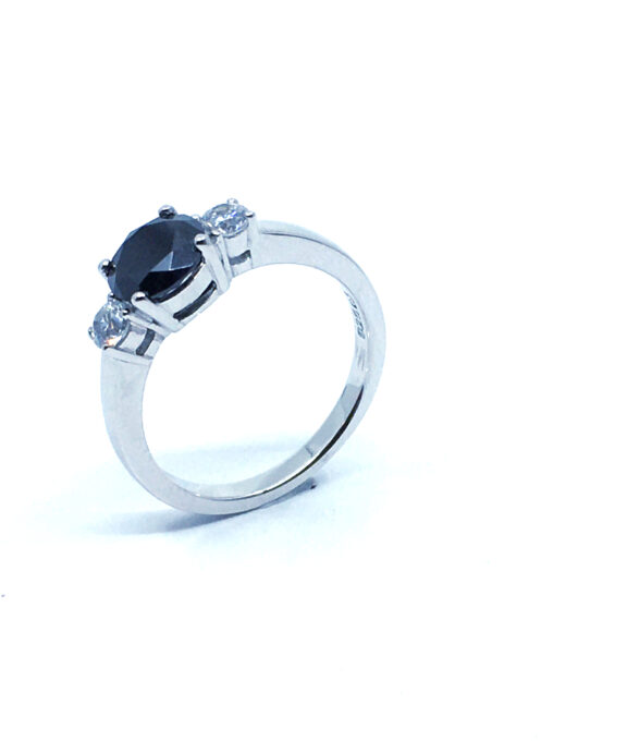SØLV RINGE RHODINERET MED SORT + 2 SYNTETISKE ZIRKONIA