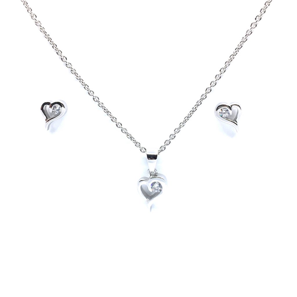 SØLV SÆT 13 HALSKÆDE + ØRERINGE STIK HJERTE MED SYNTETISK ZIRKONIA