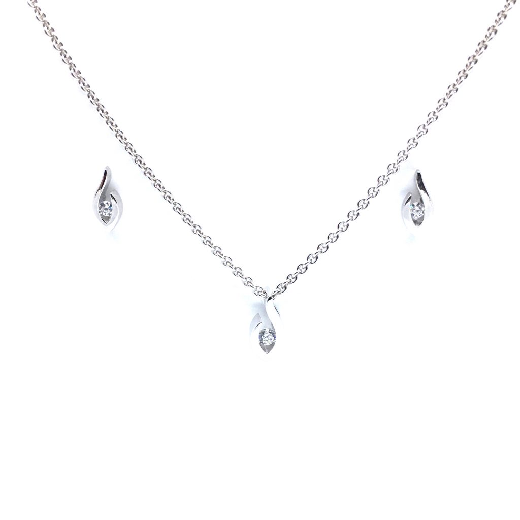 SØLV SÆT 14 HALSKÆDE + ØRERINGE STIK MED SYNTETISK ZIRKONIA