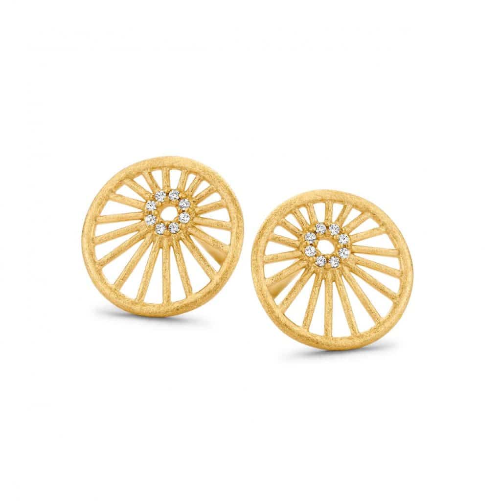 Fine ørestikker fra Spirit Icons, med et fint design, hvor glimmer møder en rustik overflade. Øreringen er lavet i sterling sølv med en forgyldt overflade. I midten af ørestikkerne sidder der små zirkonia sten, som skaber et elegant udtryk.