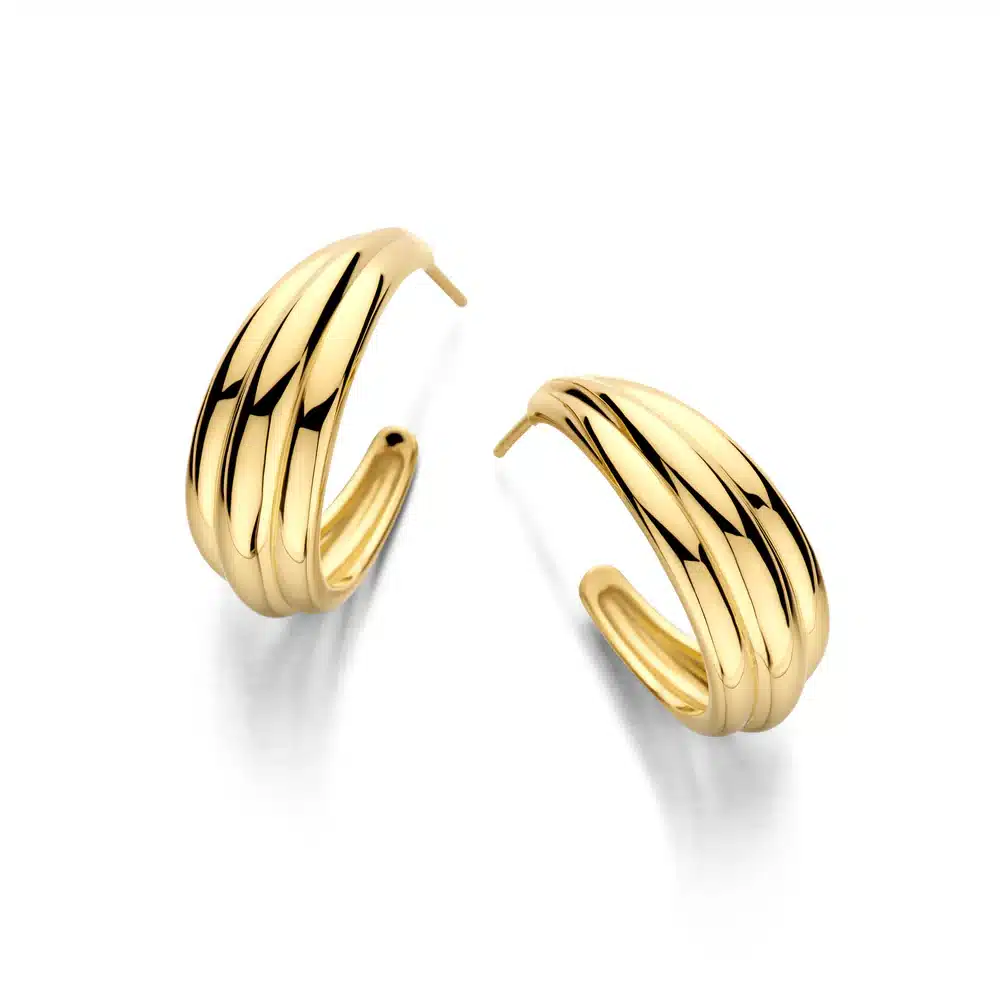 Øreringen er fremstillet i sølv der er forgyldt med 18 marts guld og med en rillet overflade.