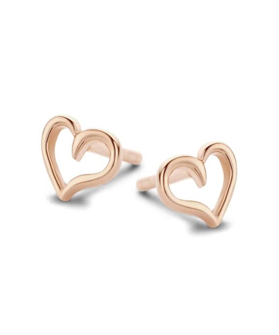 Små fine forgyldte ørestikker, formet som et hjerte.