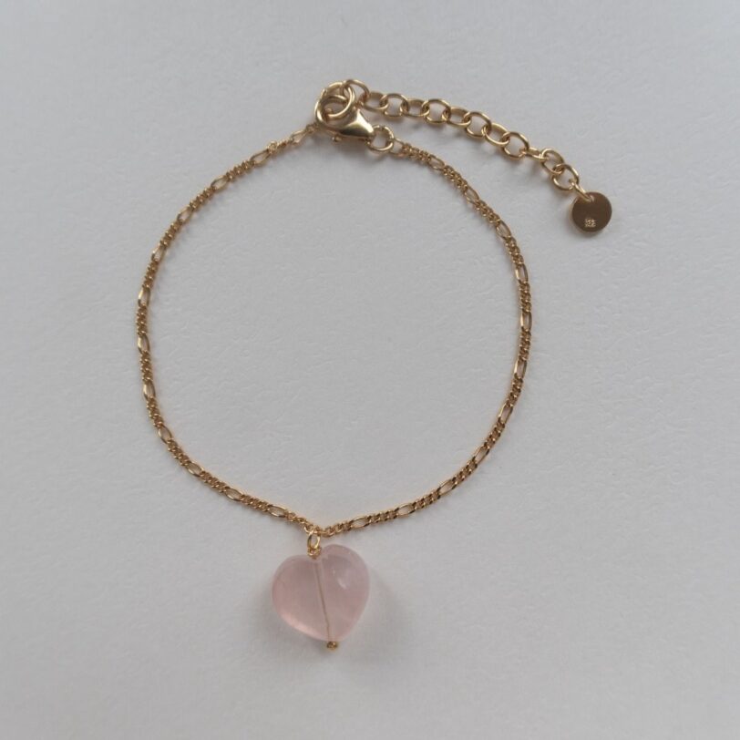 Stine A Amour serie er en klassisk romantisk serie med figaro kæde samt et hjerte vedhæng i rosa kvarts.