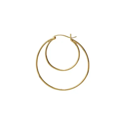 Øreringen er fremstillet i forgyldt sølv med en blank overflade og udformet som er dobbelt creol med en vippe lås.