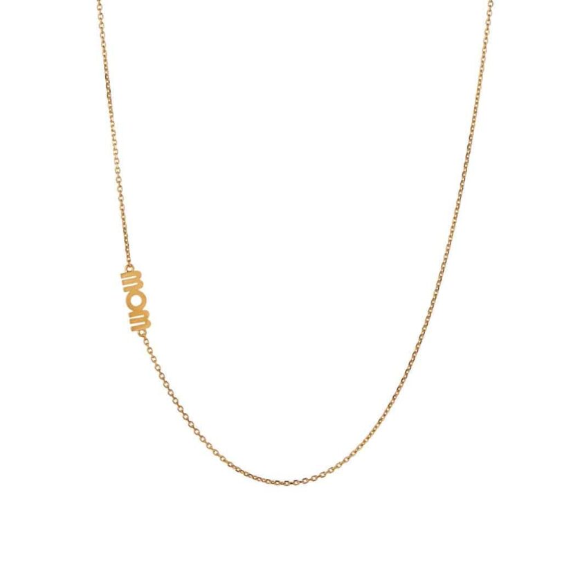 I halskæden sidder teksten MOM eller WOW, alt efter hvordan man vælger at bære den.