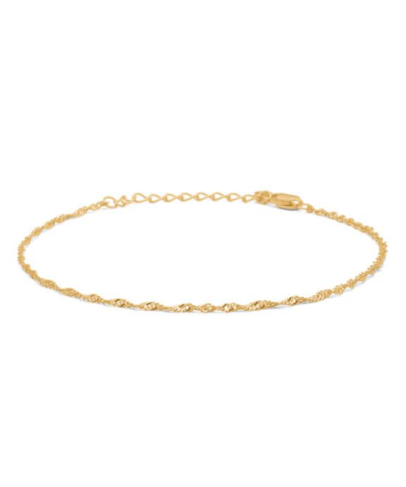 Den varme forgyldning giver en eksklusiv glød, som fremhæver designets fine detaljer og gør armbåndet til et iøjnefaldende, men stadig sofistikeret valg.