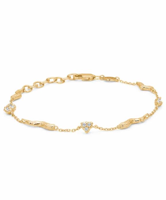 Fint armbånd fra Studio Z i sølv belagt med 18 karat guld. Armbåndet har et tidsløst design med organiske former og flotte zirkonia der fuldender looket. Det kan bæres til alle anledninger og kan nemt pifte ethvert outfit op.