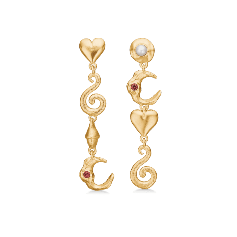 STUDIO Z CASCADE ØRERINGE FORGYLDT SØLV MED HJERTER, SNIRKLER, MÅNER OG PERLER – 7217876