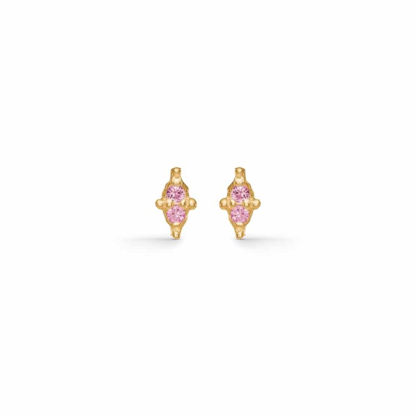 Flotte øreringe fra Studio Z i 925 sterling sølv belagt med 18 karat guld og måler 6mm. Øreringene har et unikt design med fine rosa zirkonia der fuldender looket. De skiller sig ud, er elegante og smagfulde og passer ind i enhver smykkesamling.