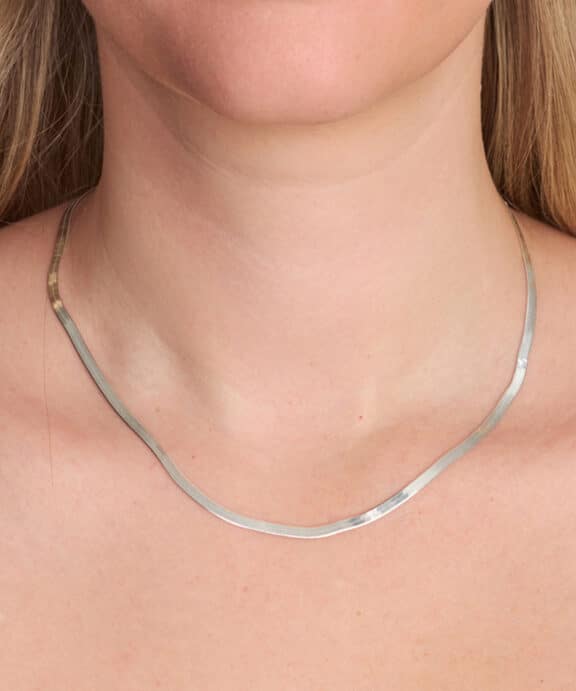 Inspireret af slangens elegante bevægelser har halskæden et glat og fleksibelt design, der smyger sig tæt om halsen og skaber et eksklusivt, moderne udtryk. Den skinnende sølvoverflade reflekterer lyset på en subtil måde og tilfører et sofistikeret shine, der løfter ethvert outfit.