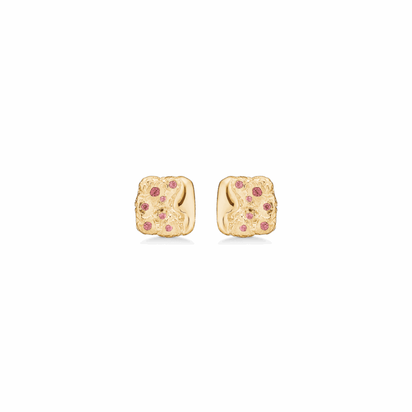 STUDIO Z EDGE ØRERINGE FORGYLDT SØLV MED RØDE STEN – 7217889