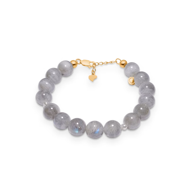 Armbåndet er et stilfuldt og elegant armbånd designet til at fremhæve både klassisk og moderne smag. Armbåndet er udført i materialer af høj kvalitet og prydet med labradoritsten, der er kendt for deres smukke, farveskiftende egenskaber. Labradoritten glimter i forskellige nuancer, især blå og grønne toner, når lyset rammer den fra forskellige vinkler.