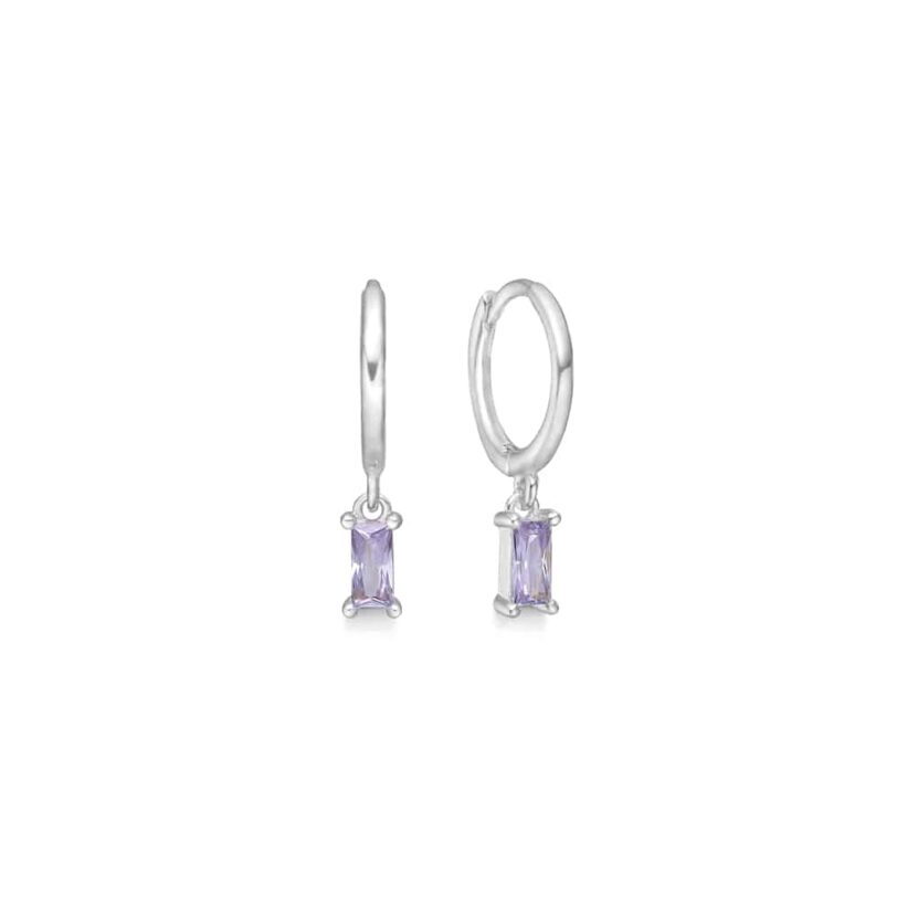 Øreringen er lavet i 925 sterling sølv med en lilla firkantet syntetisk zirkonia.
