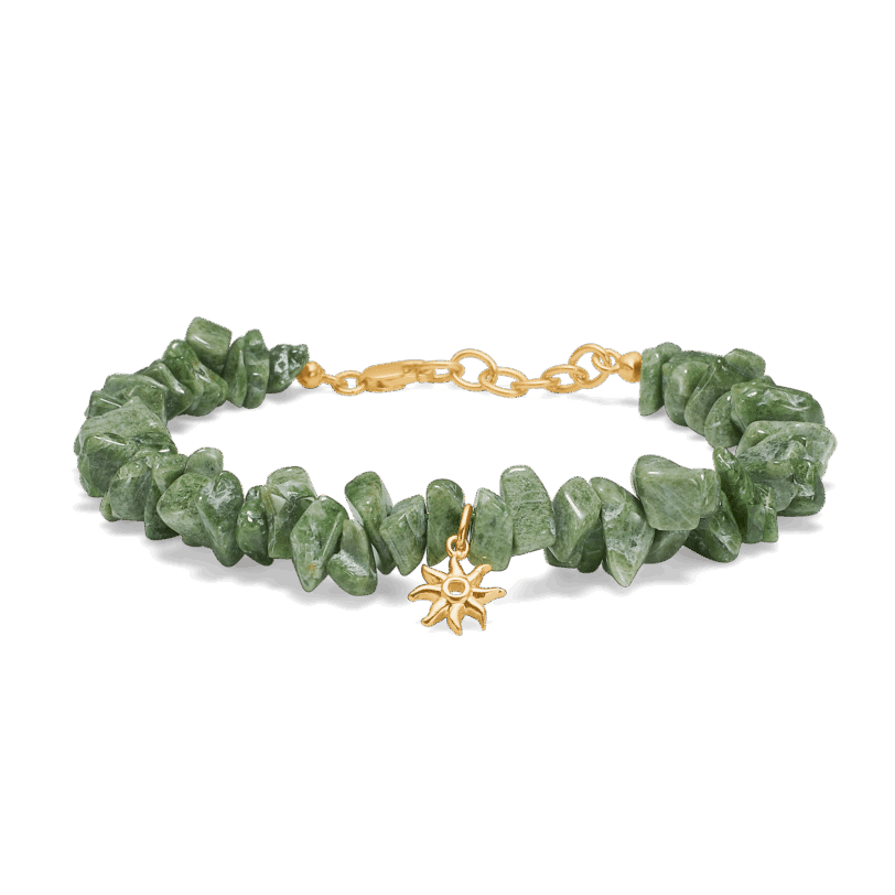 Super fedt statement armbånd med natur stenen chrom diopsid samt en smuk sol i midten af armbåndet.