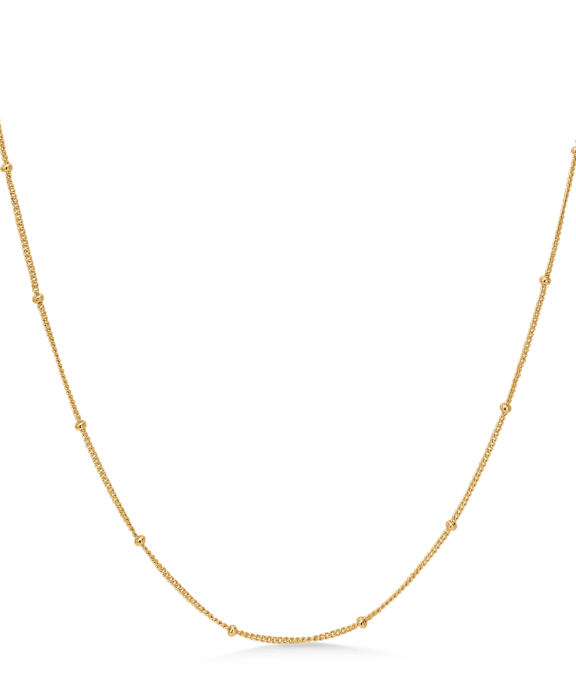 Det varme, gyldne skær tilfører et eksklusivt udtryk, der smukt fremhæver din naturlige glød, uanset om du styler den til hverdag eller fest. Det minimalistiske design gør halskæden nem at kombinere med andre smykker, men den står også stærkt alene som et elegant blikfang.