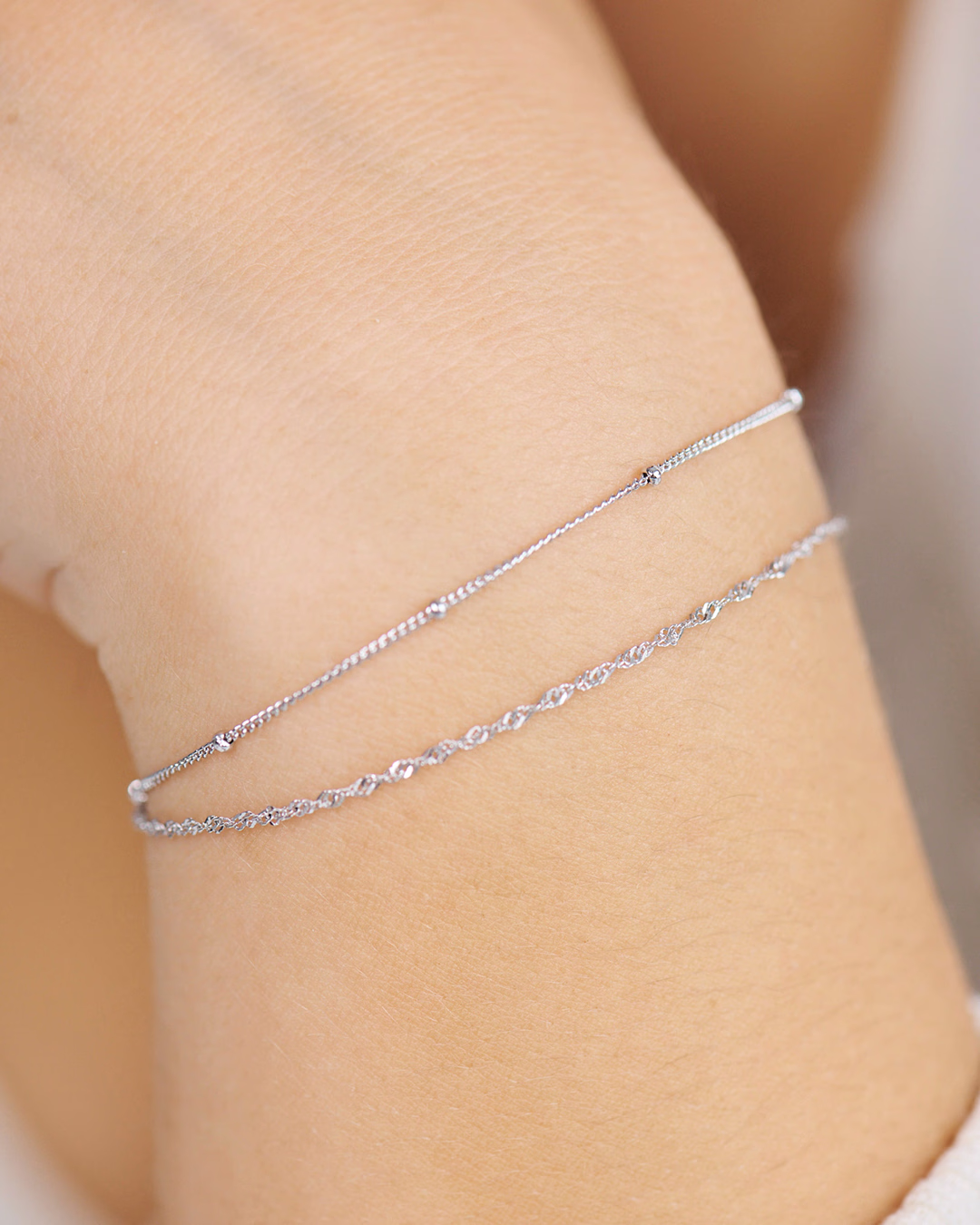 Orbit armbånd er et klassisk armbånd med en enkelt kæde og små kugler.