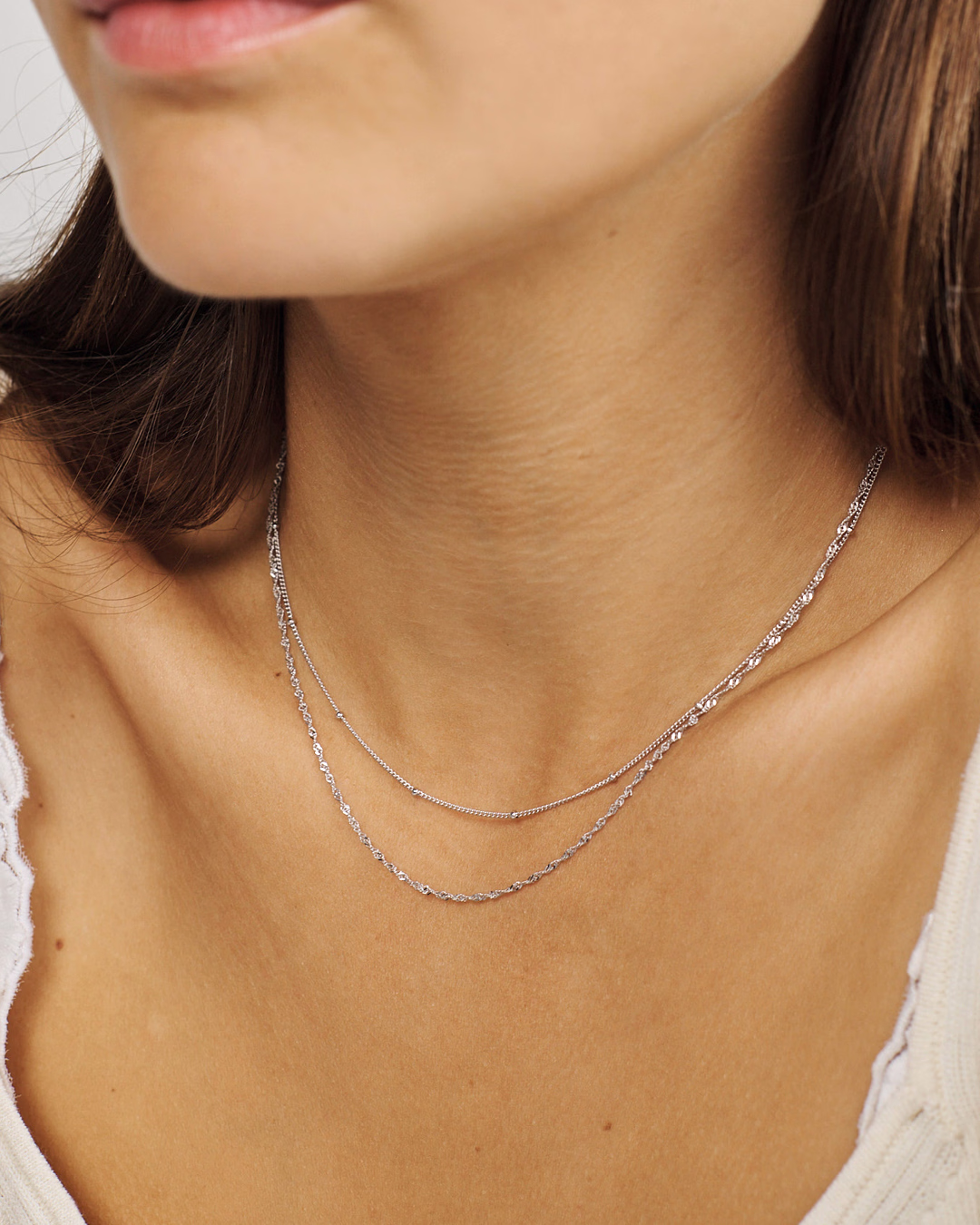 Flow halskæden er fremstillet i 925 sterlingsølv, der er belagt med rhodium.