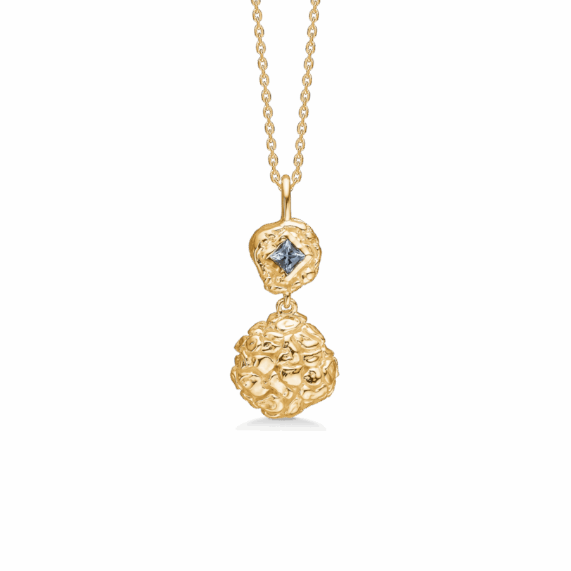 STUDIO Z UNTAMED HALSKÆDE FORGYLDT SØLV MED BLÅ/GRÅ STEN – 7227884