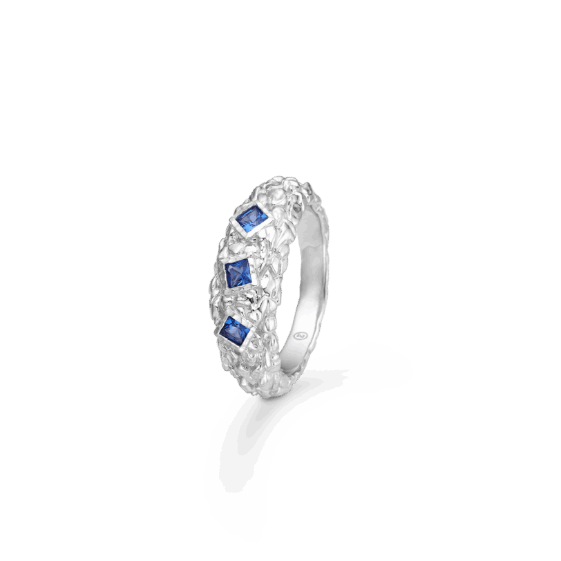 Denne smukke Untamed ring fra STUDIO Z er fremstillet i 925 sterling sølv og prydet med tre funklende blå zirkonia sten. De blå nuancer skaber et elegant farvespil, der sammen med ringens rustikke overflade tilfører et cool og iøjnefaldende udtryk. Perfekt til at give dit look et løft, uanset om det er til hverdag eller særlige lejligheder. Tilføj et stilfuldt og moderne smykke til din samling med denne elegante ring fra STUDIO Z!