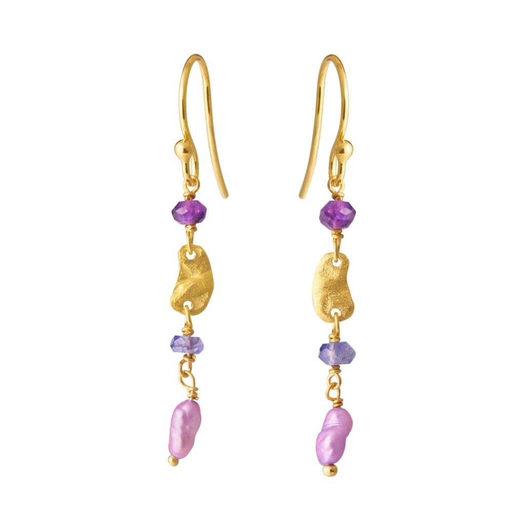 Materiale: Sterling sølv belagt med guld samt ametyst, iolite, indfarvet ferskvandsperler.