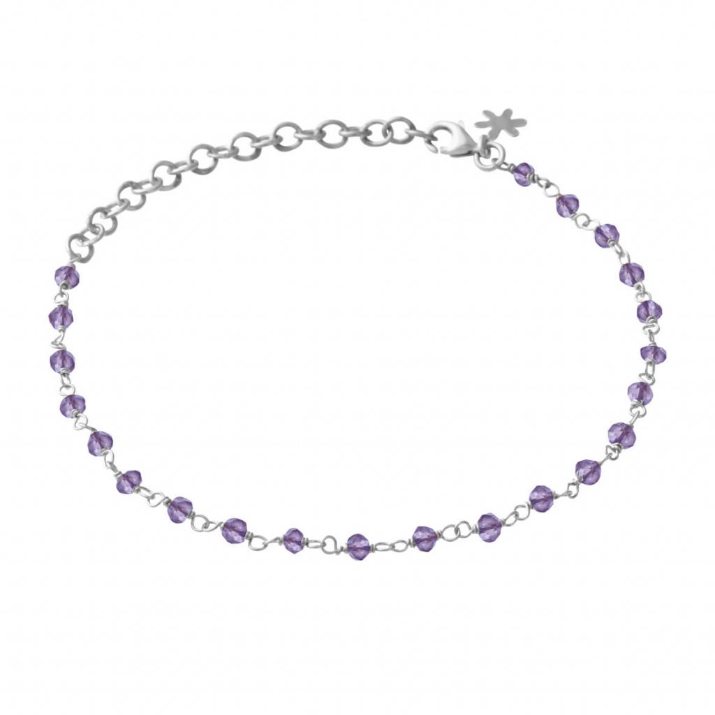 Dette elegante armbånd er fremstillet i sterling sølv. Armbåndet er sat med facet slebne ametyst stene som måler ca 3 mm. Armbåndet måler 16-20 cm i justerbar længde.