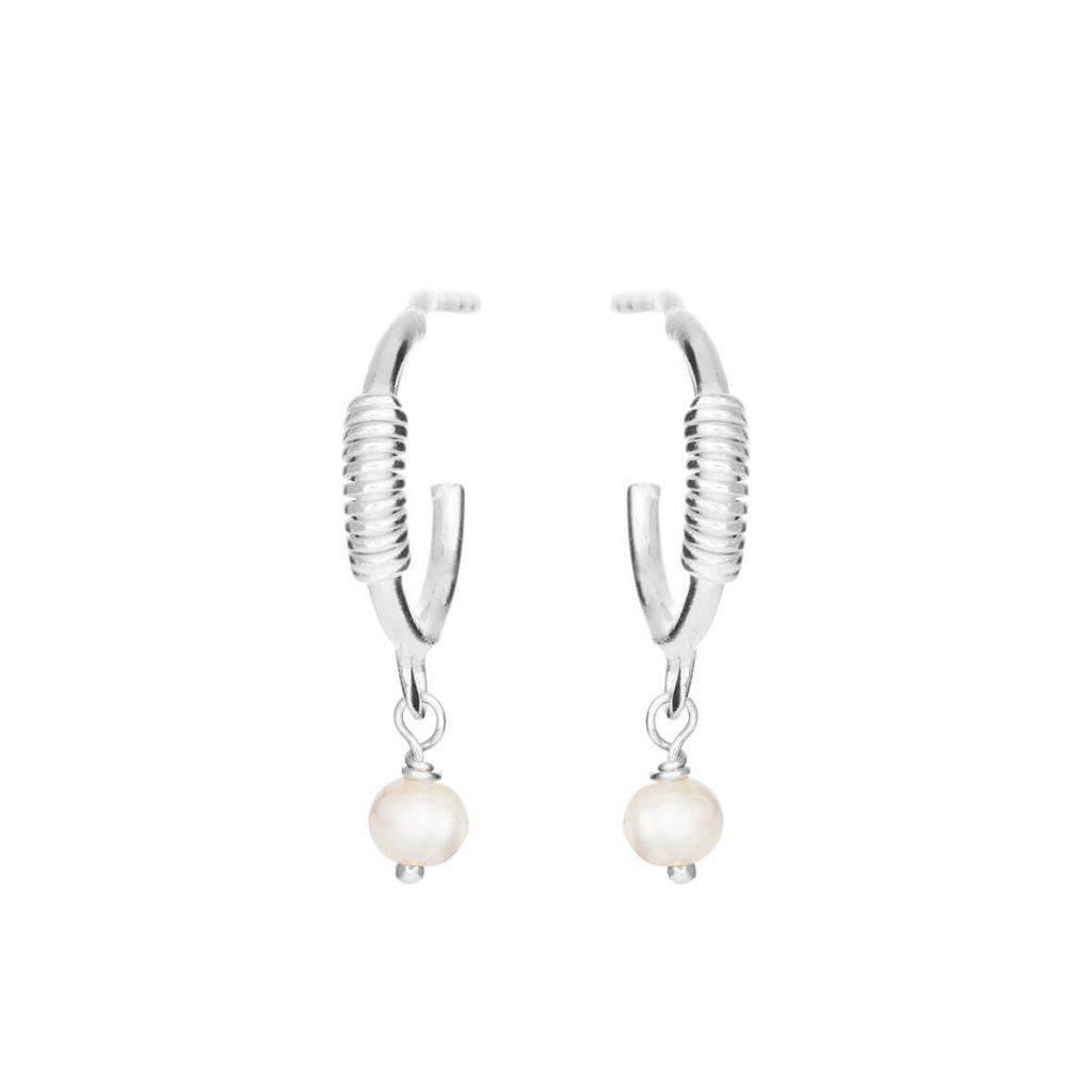 Disse fine øreringe er fremstillet i sterling sølv. Øreringene er designet som halv creoler med ørestikkere, og har spiral detaljer på creolen. Creolen måler 11 mm og har en ferskvands perle hængende under.