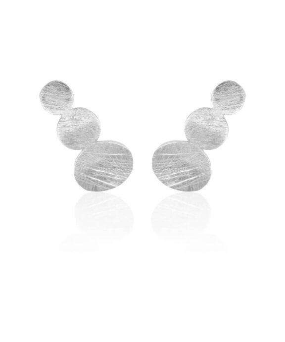 Sølv øreringe på stik med tre cirkler. De tre cirkler har en mat overflade og måler fra 4 til 7 mm og en samlet længde på 16 mm.