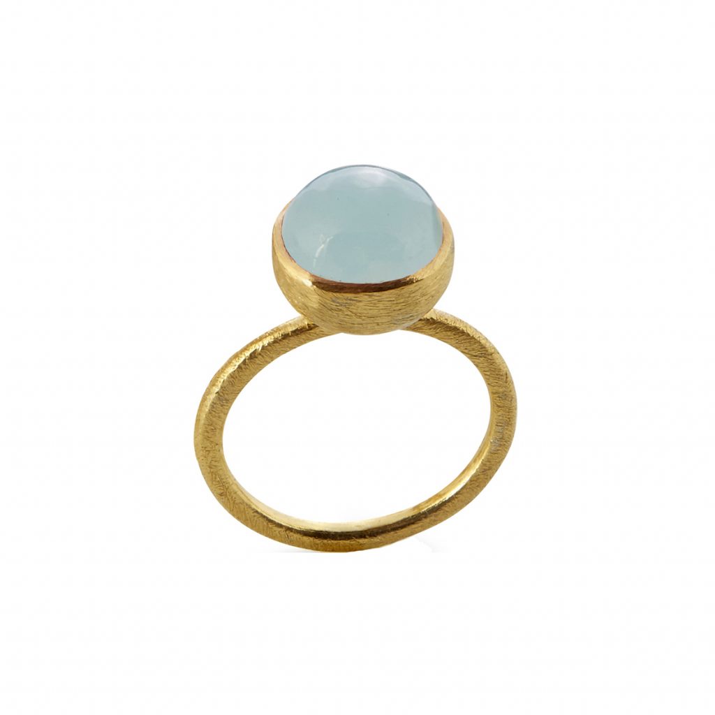 Ringen er fremstillet i forgyldt sterlingsølv. Stenen i ringen er en afrundet lyseblå krystal.