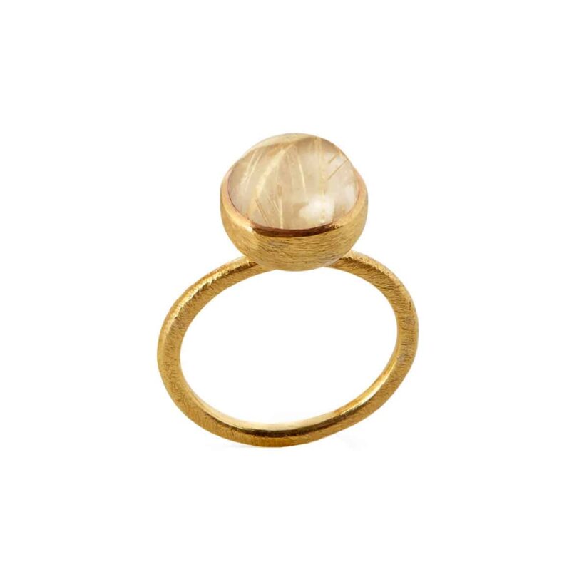 Smuk forgyldt sølv ring med en rutilkvarts på toppen. Ringen er matteret og let rillet, så den får et mere råt look.