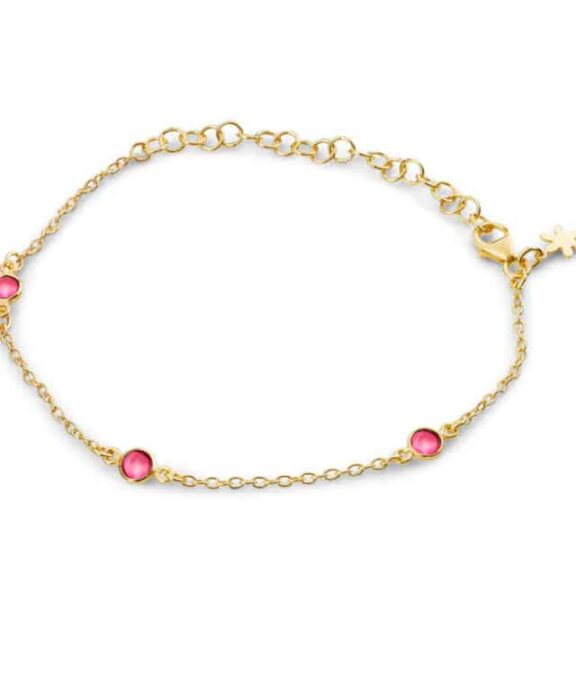 Flot sølv forgyldt armbånd med cabochon pink krystal på leddene.