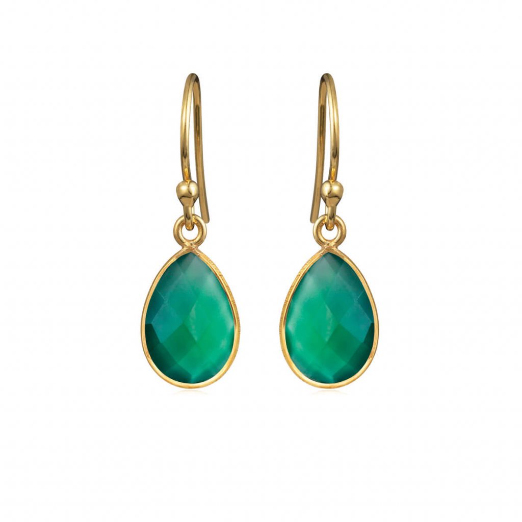 Sølv forgyldt øreringe som hænger med facet sleben grøn agat. Agaten er dråbe formet som måler 12 mm i højden og 8 mm i bredden.