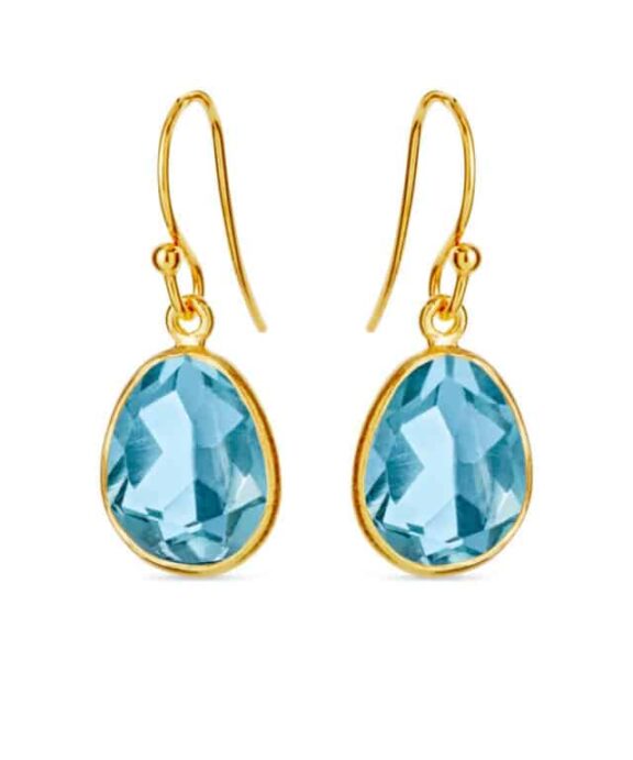 Smukke sølv forgyldte hænge øreringe med facetteret blå topaz.