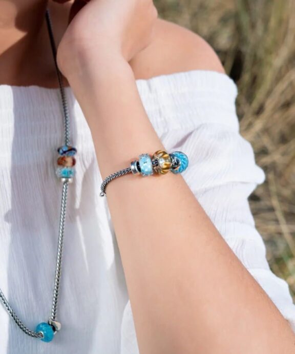 Kan sættes på armbånd eller kæder fra Troldekugler – sæt sammen med andre glas- eller sølvkugler og skab dit helt eget udtryk.