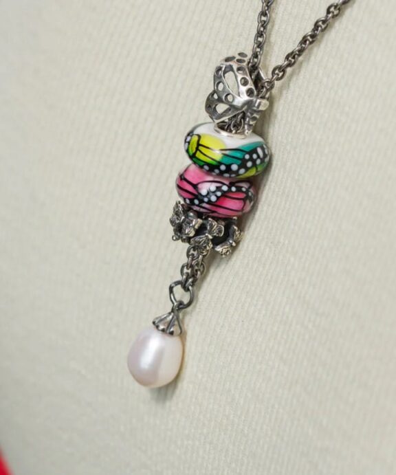 Er 1 af 4 glas kugle led i Vinge-serien. Denne kugle har lyserød og pink farver og minder om en sommerfugle-vinge. Kuglerne kan variere i farve og størrelse.