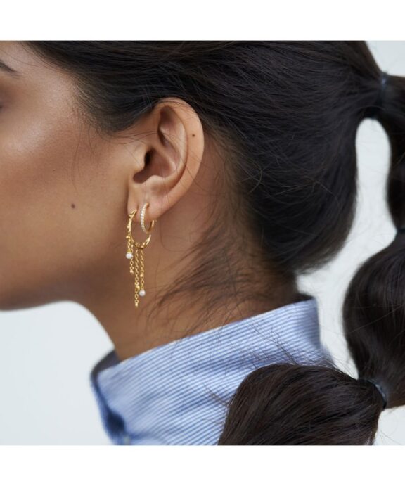 LUND COPENHAGEN 8 KARAT GULD ØRERINGE HÆNGER MED SYNTETISK RUBIN – 309696-07